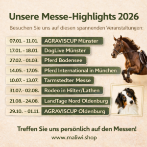 Entdecken Sie unser vielseitiges Sortiment – von hochwertigen Pferdeleckerlis und Pferdefutter über Hundesnacks und Hundefutter bis hin zu Katzensnacks sowie Miscanthus-Einstreu für Pferde und Kleintiere.